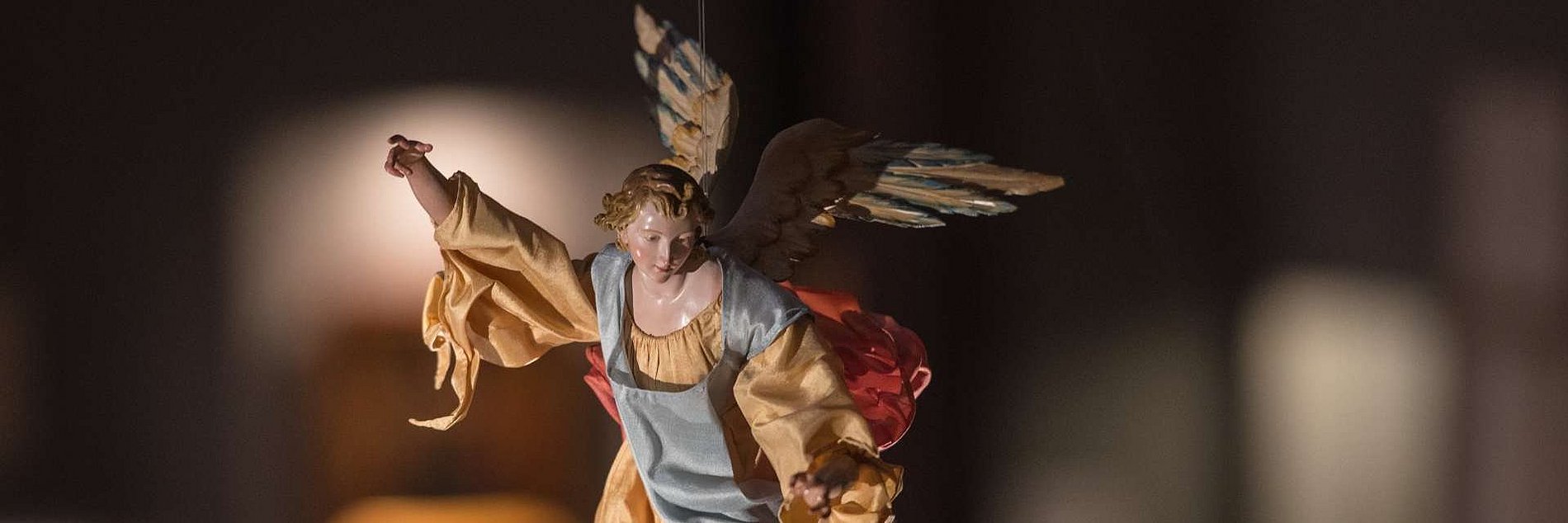 Die Krippe aus St. Leonhard, entstanden im späten 18. Jahrhundert in Neapel, gehört für viele Frankfurter zu Weihnachten. Mit ihren reich gekleideten, erzählerischen Figuren zeigt sie das Geschehen um die Geburt Christi in besonders anschaulicher Weise. Bis zur Wiedereröffnung der Kirche werden die kostbaren Figuren im Dommuseum aufbewahrt. Vom zweiten Advent bis Mariä Lichtmess (2. Februar) zeigt das Dommuseum die Krippe in einer bühnenartigen Installation im Kreuzgang des Doms. Das Pendant zu der Krippe bildet ein neu erworbenes Werk der Künstlerin Julia Krause-Harder. Der gestrickte und gehäkelte Mantel mit Szenen aus dem Marienleben entstand im Atelier Goldstein und konnte mit Mitteln der BHF-Bank für die Sammlung des Museums erworben werden.