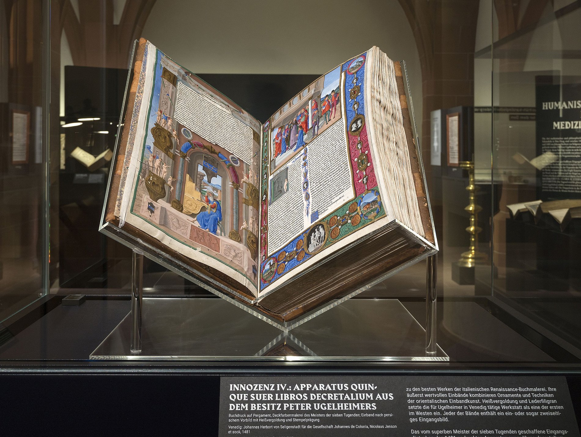 Alle diese Aspekte beleuchtet die Ausstellung mit einzigartigen Leihgaben aus nationalen und internationalen Bibliotheken, Museen und Archiven. Zeugnisse zu Ugelheimers Lebensumständen, zum Venedighandel und zur frühen Druckkunst lassen ein dichtes Bild der Welt entstehen, in der Ugelheimer sich bewegte. Im Mittelpunkt der Ausstellung aber stehen die Inkunabeln aus Ugelheimers eigener Sammlung: grandiose Buchkunstwerke voller überraschender Bilder und leuchtender Farben, die bis heute die Betrachter in Erstaunen und Bewunderung versetzen.
