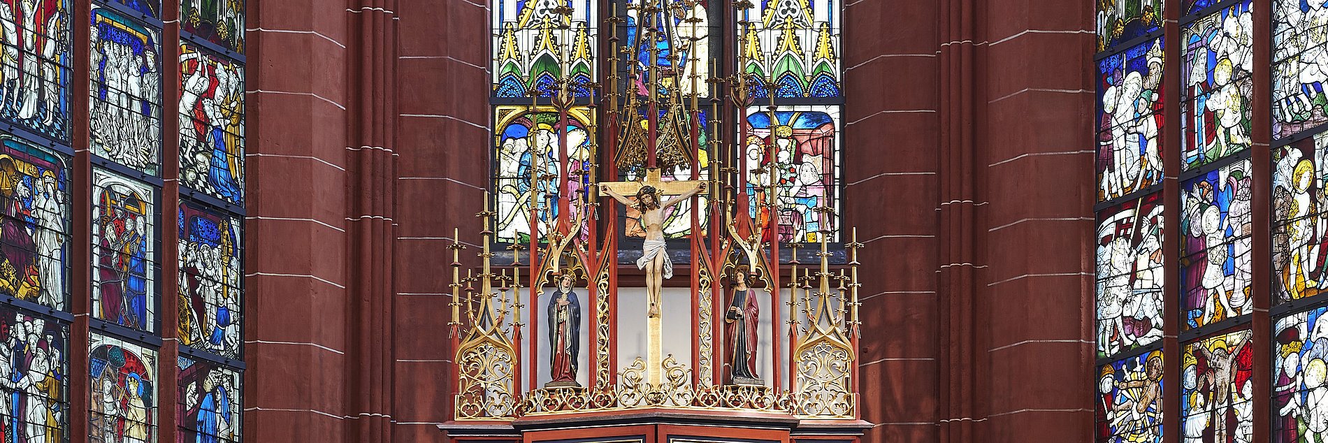 St. Leonhard gilt vielen als eine der schönsten Kirchen Frankfurts. Mehr als acht Jahre war sie geschlossen und wurde umfassend saniert und restauriert. Seit September 2019 ist die Kirche nun wieder für die Gemeinde und die Besucherinnen und Besucher geöffnet. Im Rahmen unserer Kirchenführung können Sie mehr erfahren über die Architektur und Geschichte von St. Leonhard und auch die Ausstattung des Innenraums mit den Altären und Kunstwerken besichtigen.